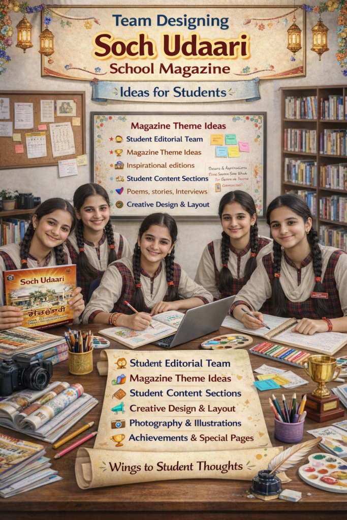 A school magazine such as Soch Udaari is a medium in which students and teachers publish their writings, artworks, school news, which are a celebration of their school life.